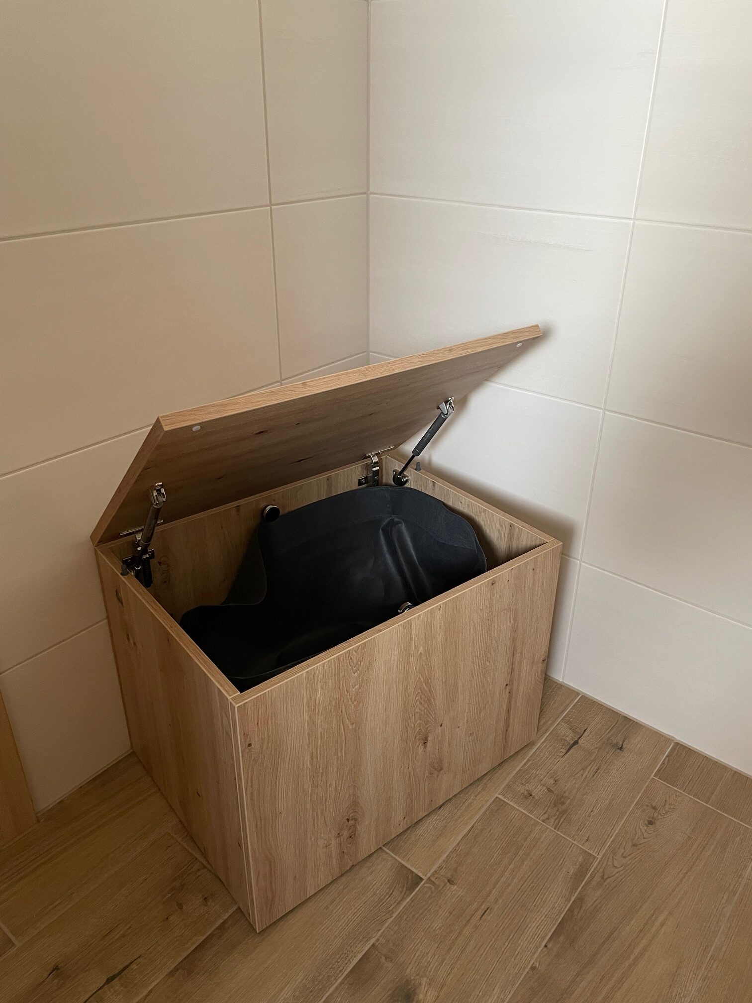 Die Option später eine Waschmaschine zu integrieren wurde gegeben, aber vorerst als weitere Stauraumfläche genutzt.
